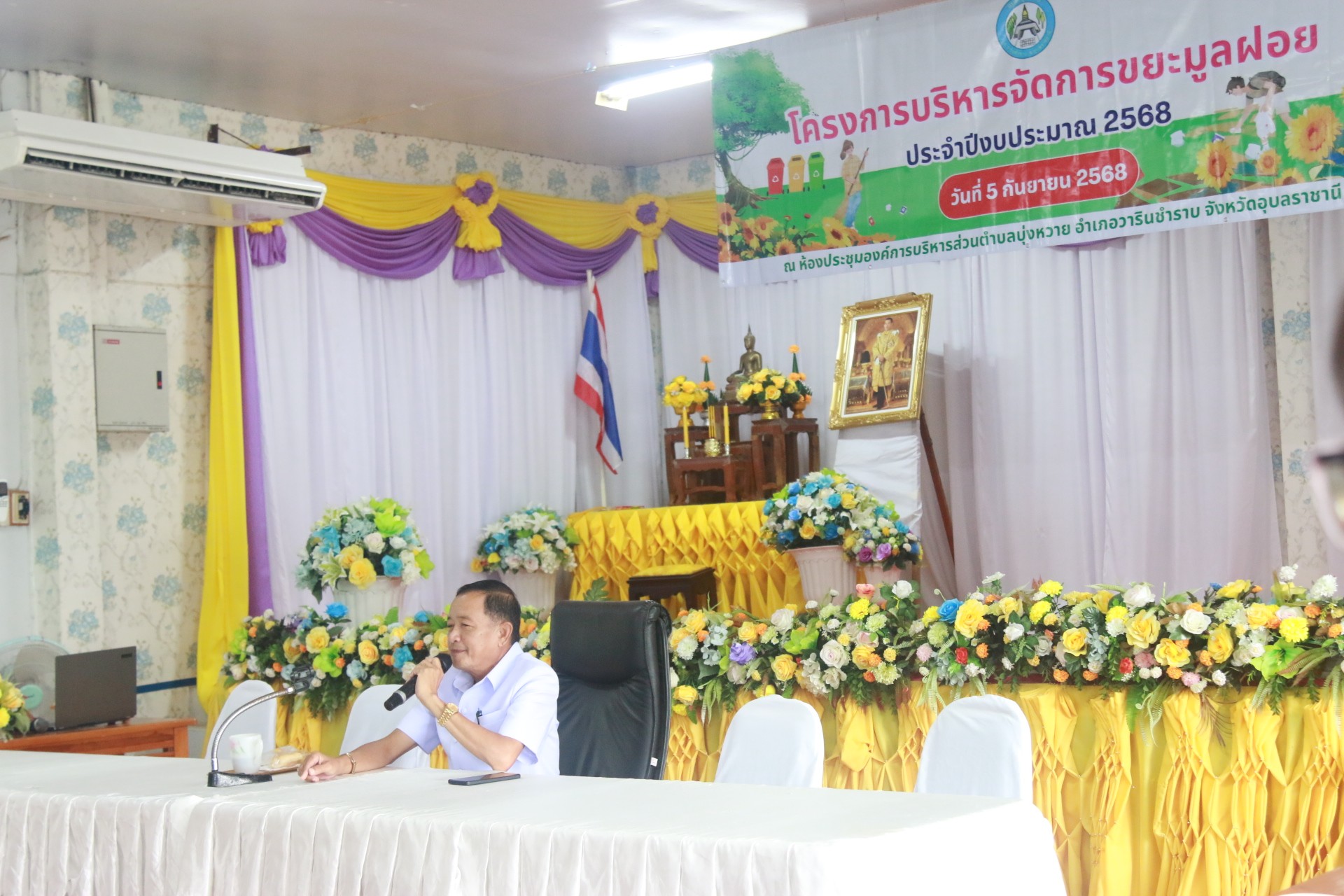 วันที่ 5 กันยายน 2568 เวลา 09.00 น. นายเสถียร รักษารอด นายกองค์การบริหารส่วนตำบลบุ่งหวายเป็นประธานเปิดงานโครงการบริหารจัดการขยะมูลฝอย ประจำปีงบประมาณ 2568 ณ ห้องประชุมองค์การบริหารส่วนตำบลบุ่งหวาย