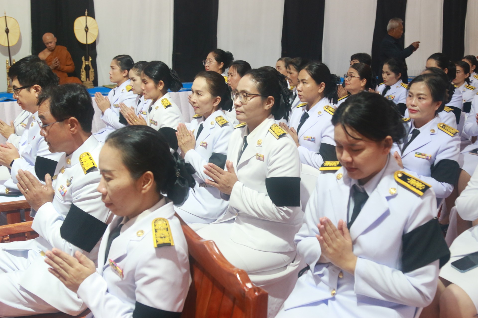 วันจันทร์ที่ 3 พฤศจิกายน 2568 เวลา 15.00 น. องค์การบริหารส่วนตำบลบุ่งหวาย สำนักงานสาธารณสุขอำเภอวารินชำราบ กำนัน ผู้ใหญ่บ้านตำบลบุ่งหวาย พุทธศาสนิกชนอำเภอวารินชำราบ ร่วมประกอบพิธีบำเพ็ญกุศล สวดพระอภิธรรม อุทิศถวายพระราชกุศล แด่สมเด็จพระนางเจ้าสิริกิติ์ พระบรมราชินีนาถ พระบรมราชชนนีพันปีหลวง เพื่อแสดงความไว้อาลัย และสำนึกในพระมหากรุณาธิคุณ แห่งการสวรรคต สมเด็จพระนางเจ้าสิริกิติ์ พระบรมราชินีนาถ พระบรมราชชนนีพันปีหลวง ที่ศาลาการเปรียญ วัดแสนสำราญ อำเภอวารินชำราบ จังหวัดอุบลราชธานี