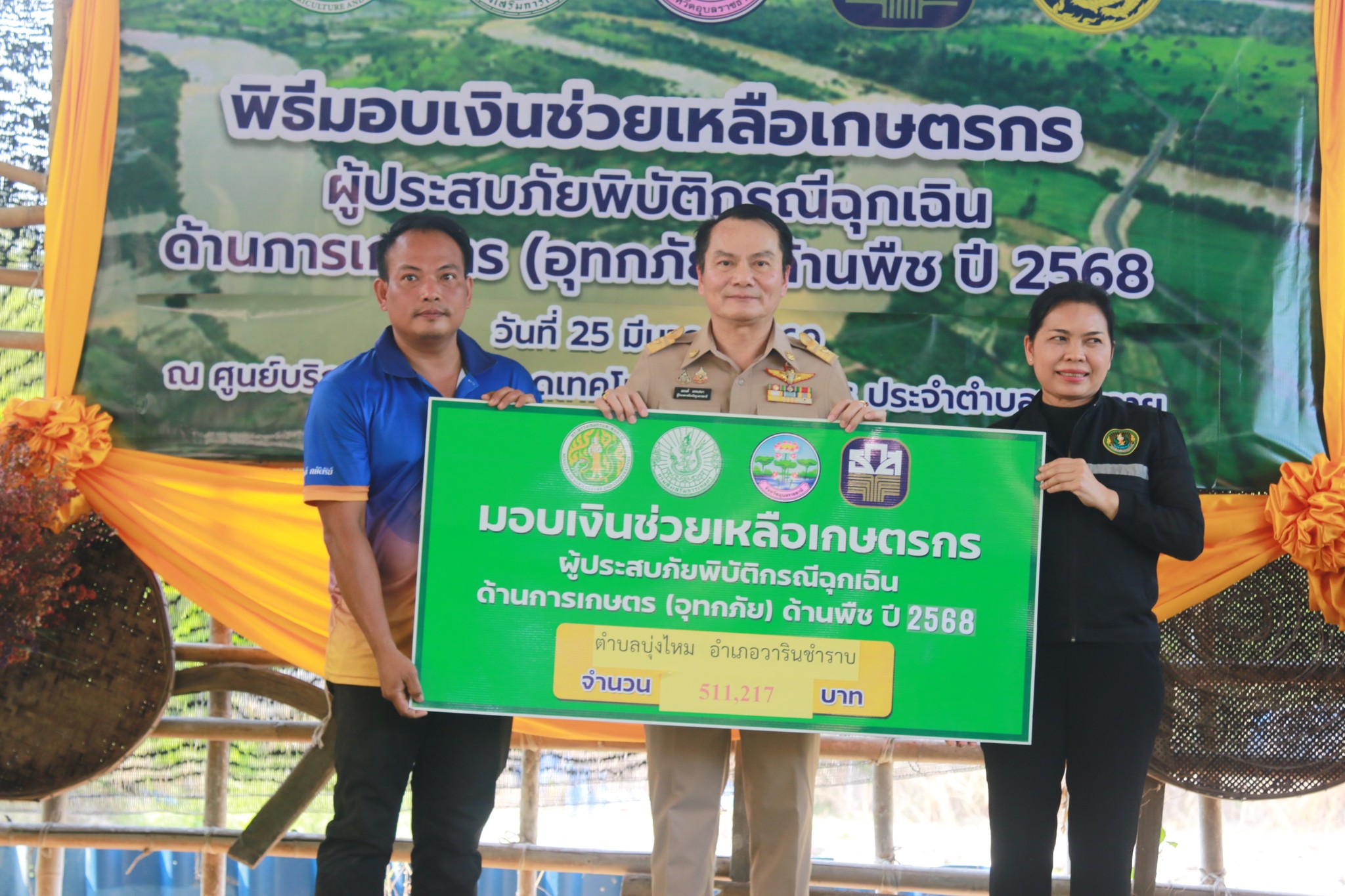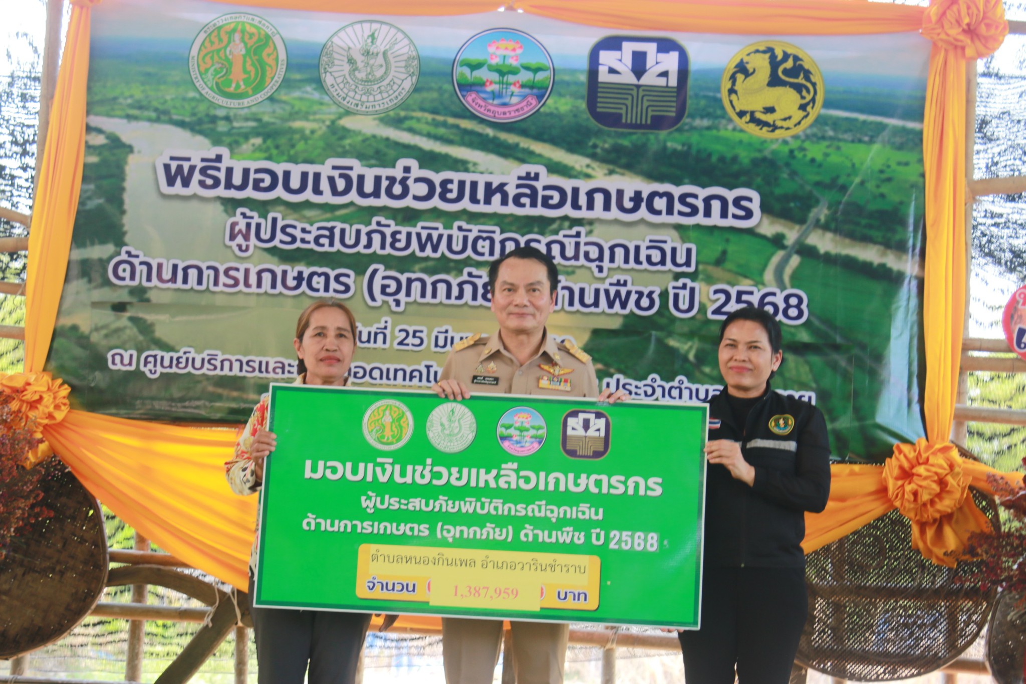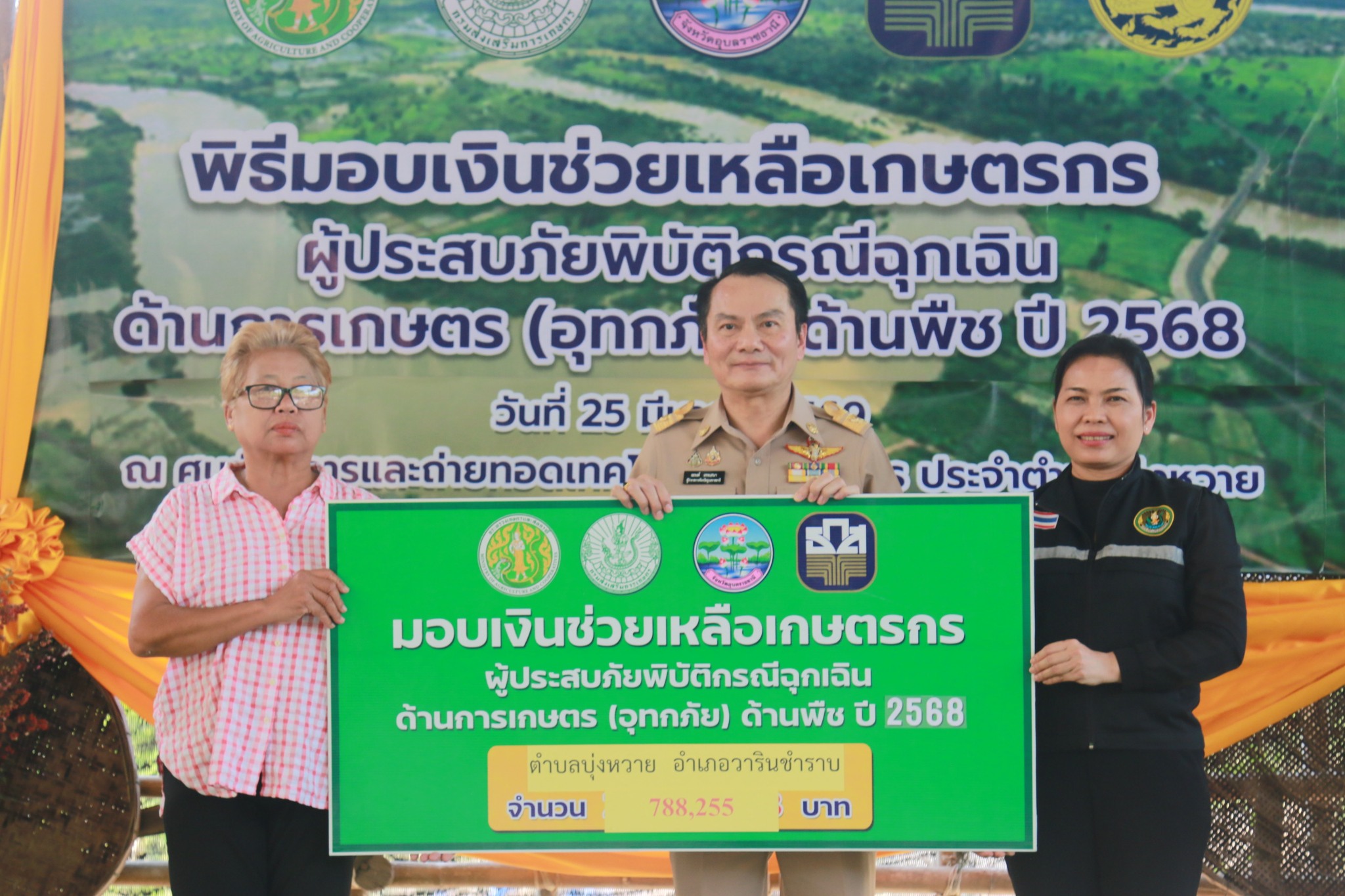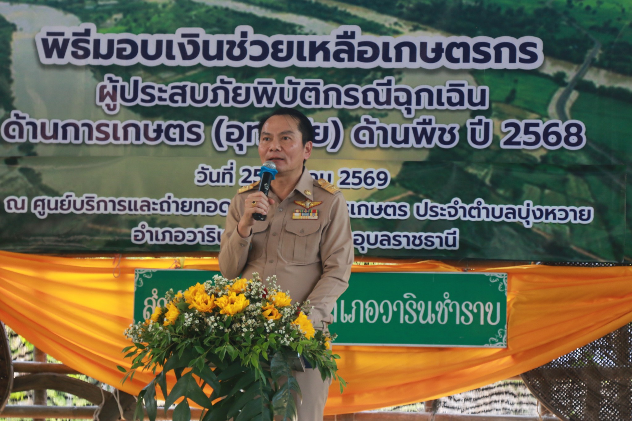 วันที่ 25 มีนาคม 2569 เวลา 14.00 น. นายณรงค์ เทพเสนา ผู้ว่าราชการจังหวัดอุบลราชธานี เป็นประธานเปิดงานพิธีมอบเงินช่วยเหลือเกษตรกรผู้ประสบภัยพิบัติกรณีฉุกเฉินด้านการเกษตร (อุทกภัย) ด้านพืช ปี 2568 ทั้งนี้นายอุดมศักดิ์ นวลศิริ นายอำเภอวารินชำราบ พร้อมหัวหน้าส่วนราชการ และนายวิศรุต ภูเกิด นายกองค์การบริหารส่วนตำบลบุ่งหวาย พร้อมด้วยคณะผู้บริหาร และ ผู้นำชุมชนทั้ง 20 หมู่บ้าน ได้เข้าร่วมพิธีมอบเงินช่วยเหลือเกษตรกรผู้ประสบภัยพิบัติกรณีฉุกเฉินด้านการเกษตร (อุทกภัย)