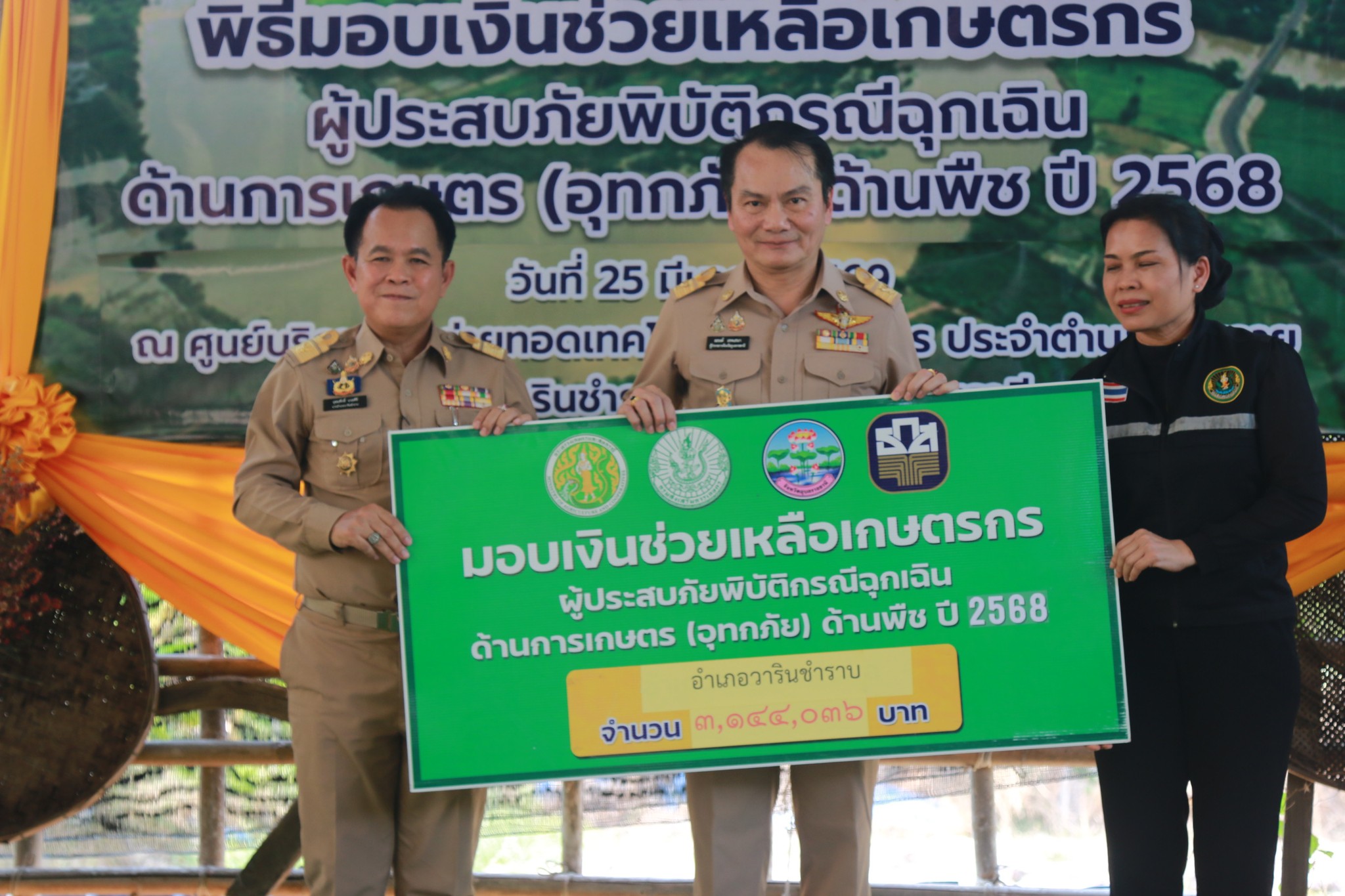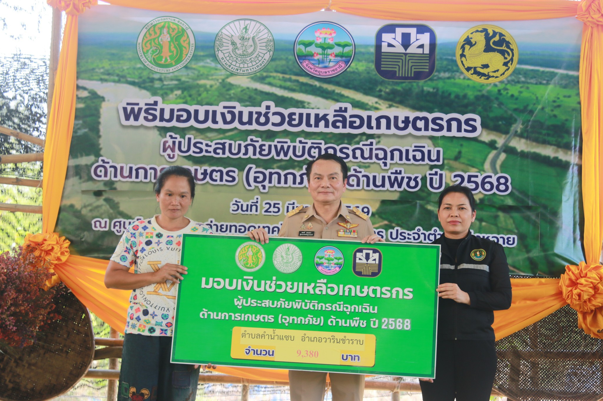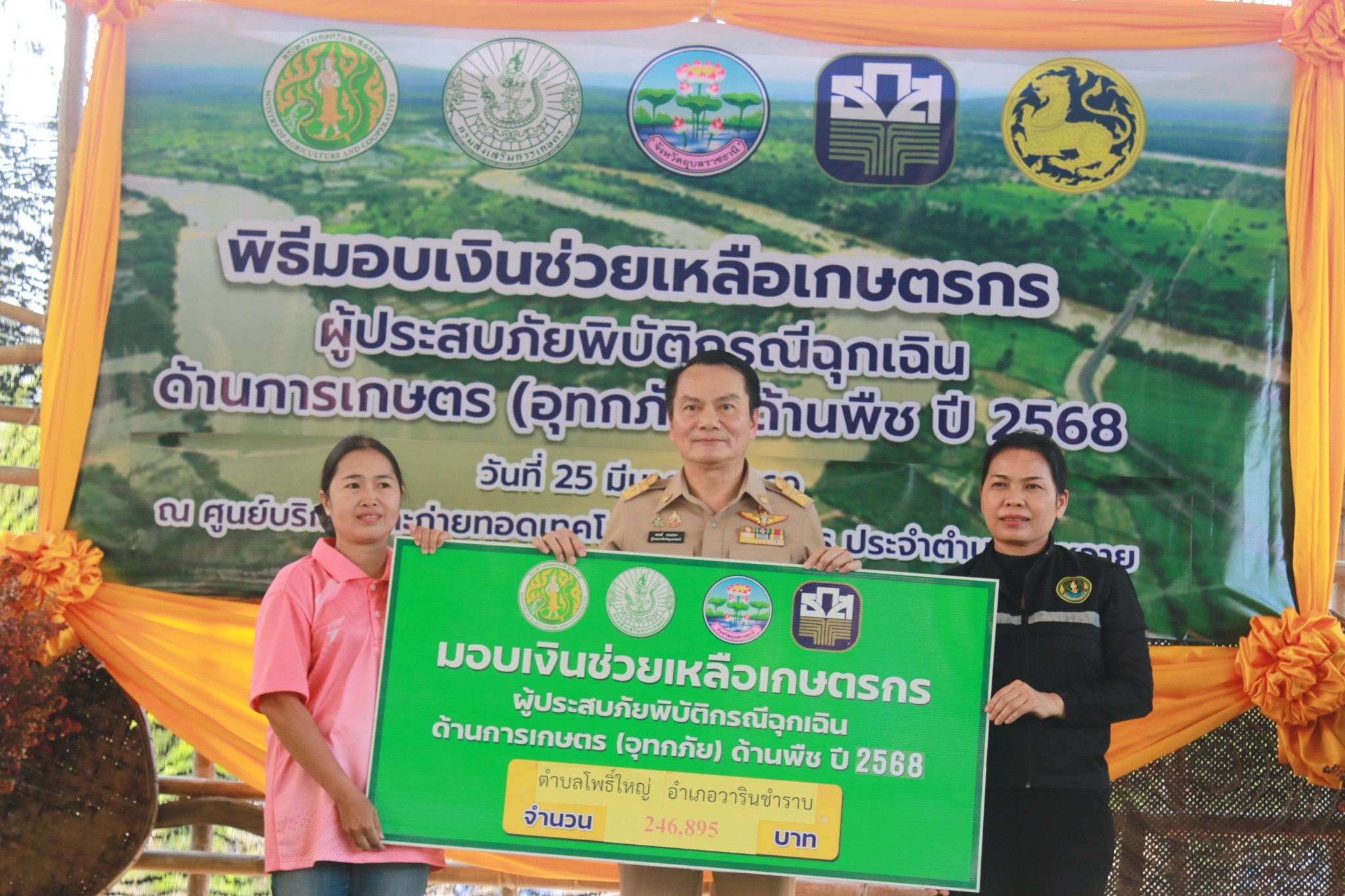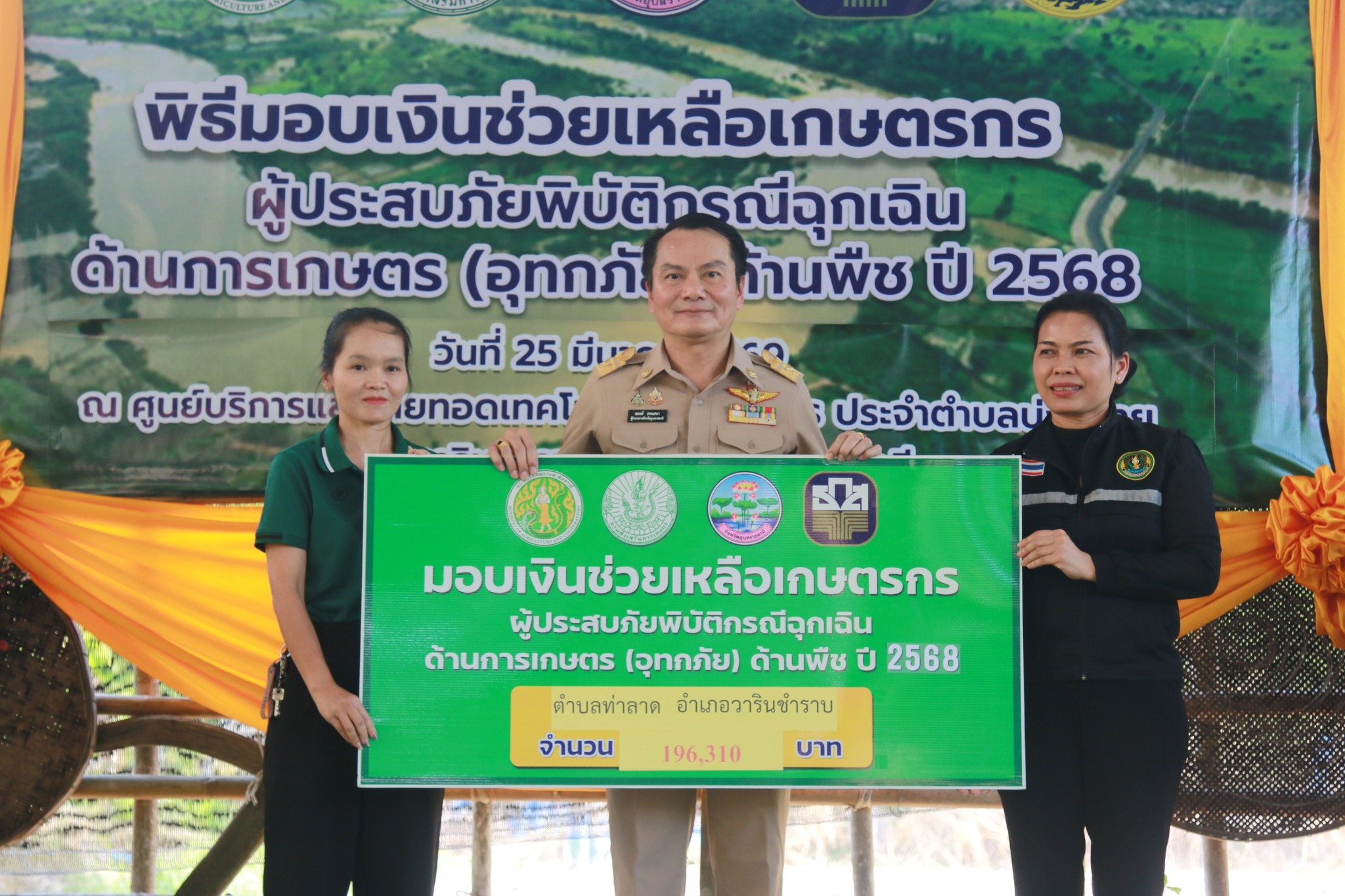 วันที่ 25 มีนาคม 2569 เวลา 14.00 น. นายณรงค์ เทพเสนา ผู้ว่าราชการจังหวัดอุบลราชธานี เป็นประธานเปิดงานพิธีมอบเงินช่วยเหลือเกษตรกรผู้ประสบภัยพิบัติกรณีฉุกเฉินด้านการเกษตร (อุทกภัย) ด้านพืช ปี 2568 ทั้งนี้นายอุดมศักดิ์ นวลศิริ นายอำเภอวารินชำราบ พร้อมหัวหน้าส่วนราชการ และนายวิศรุต ภูเกิด นายกองค์การบริหารส่วนตำบลบุ่งหวาย พร้อมด้วยคณะผู้บริหาร และ ผู้นำชุมชนทั้ง 20 หมู่บ้าน ได้เข้าร่วมพิธีมอบเงินช่วยเหลือเกษตรกรผู้ประสบภัยพิบัติกรณีฉุกเฉินด้านการเกษตร (อุทกภัย)