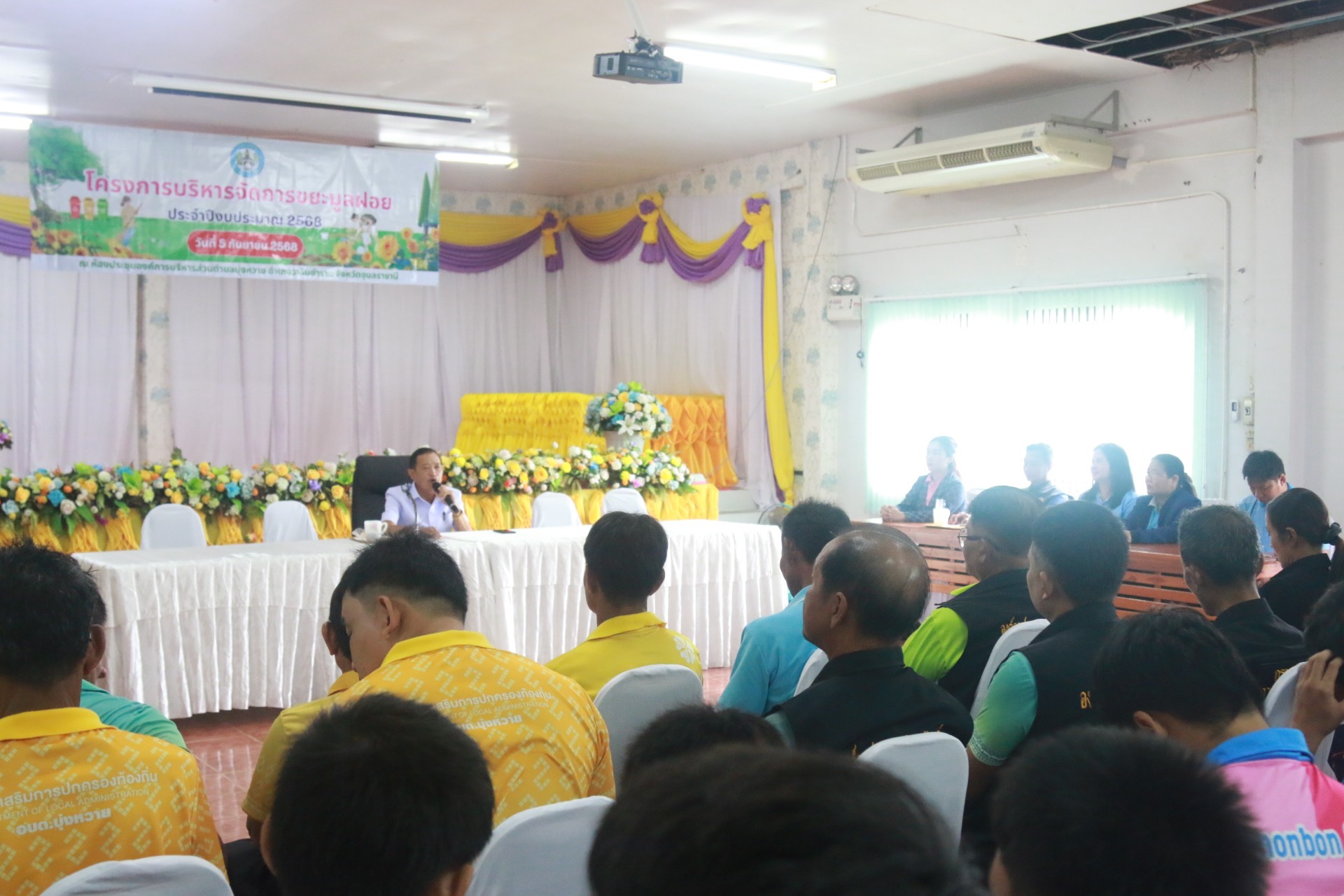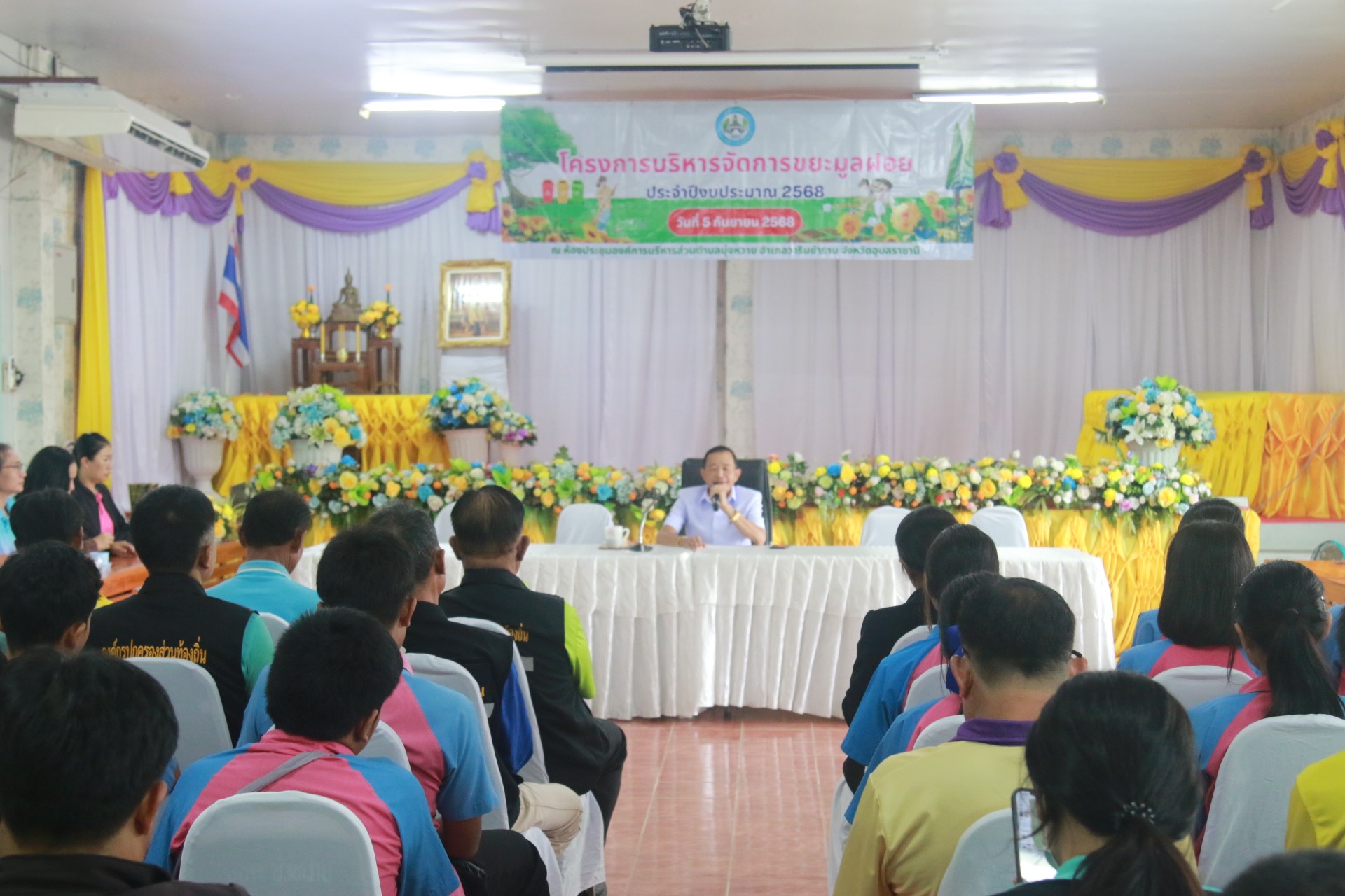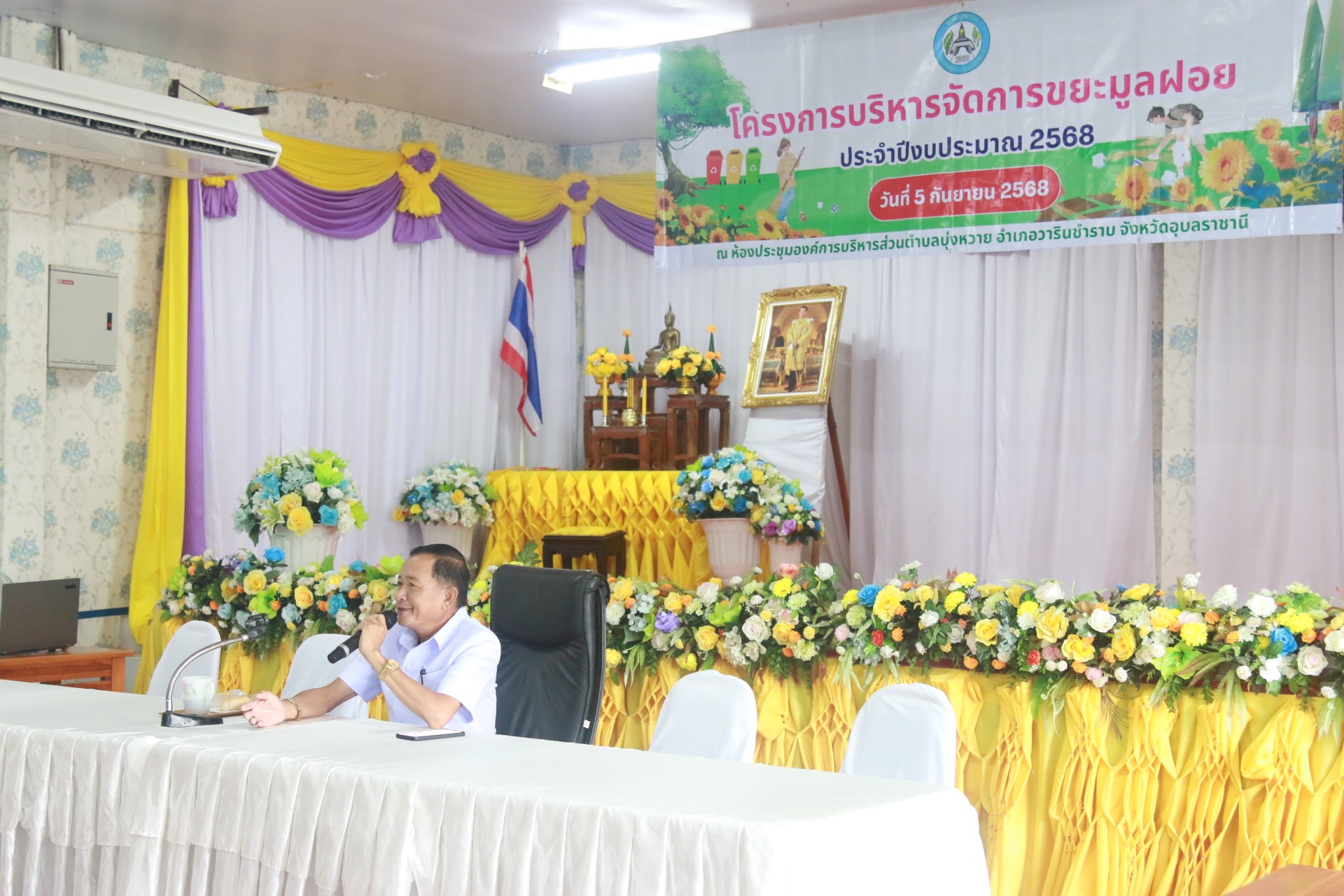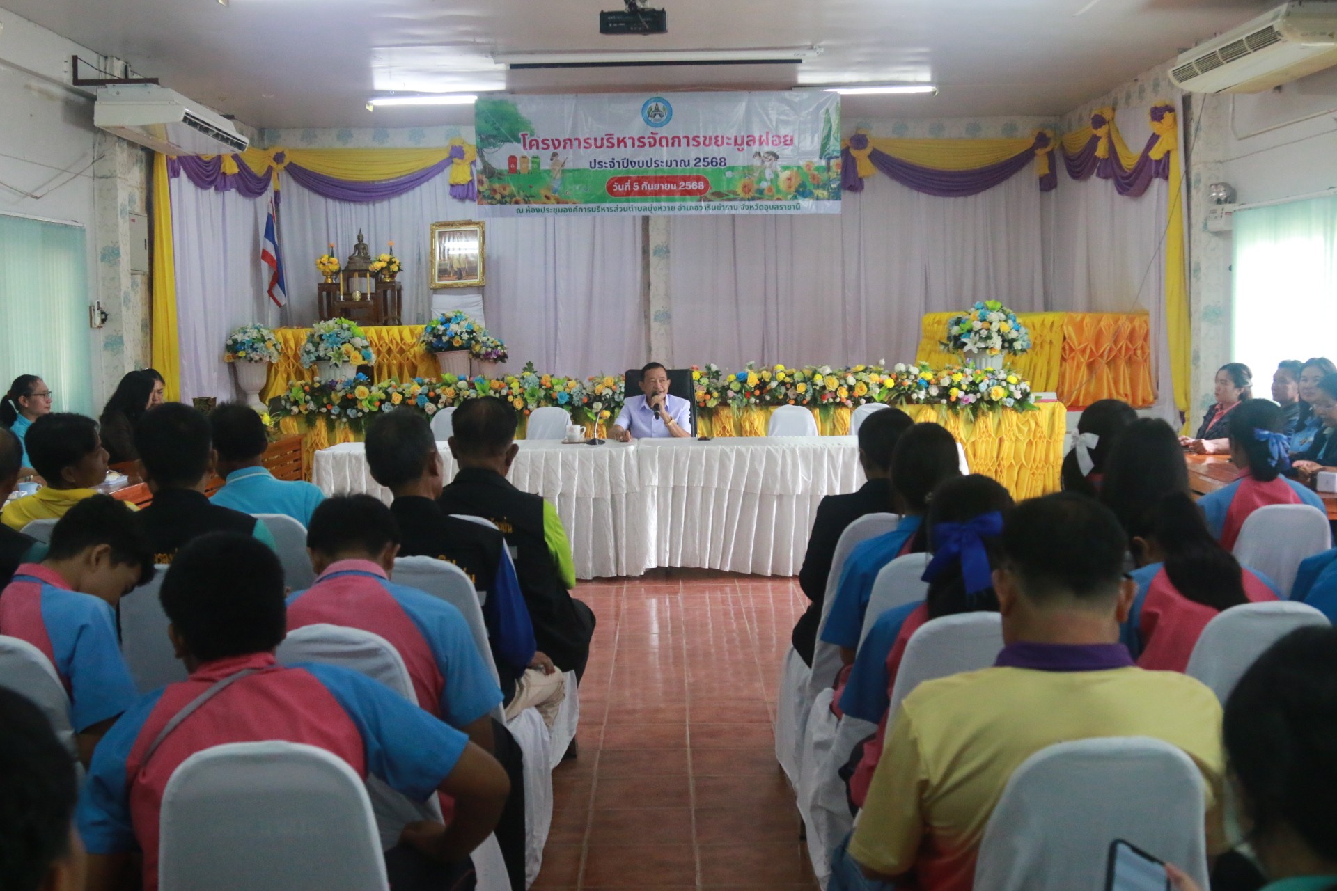 วันที่ 5 กันยายน 2568 เวลา 09.00 น. นายเสถียร รักษารอด นายกองค์การบริหารส่วนตำบลบุ่งหวายเป็นประธานเปิดงานโครงการบริหารจัดการขยะมูลฝอย ประจำปีงบประมาณ 2568 ณ ห้องประชุมองค์การบริหารส่วนตำบลบุ่งหวาย